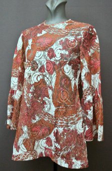 1970's day-dress, cotton dress, A-line dress, psychedelic dress, mini dress, crimplene dress, floral dress, ethnic dress