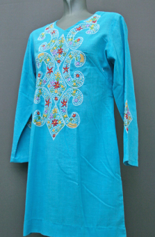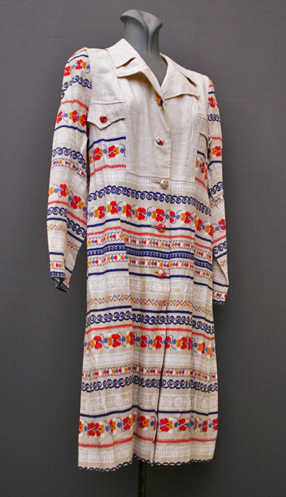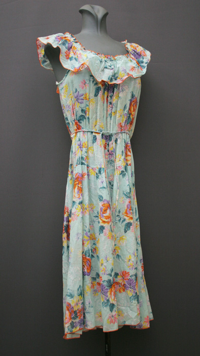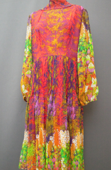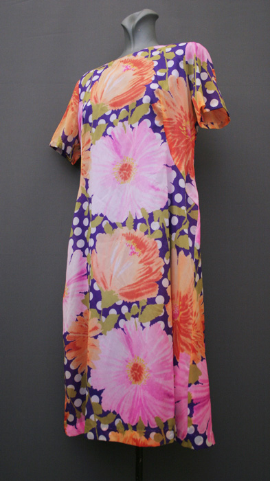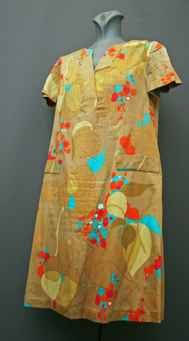 1970's day-dress, cotton dress, A-line dress, psychedelic dress, mini dress, crimplene dress, floral dress, ethnic dress